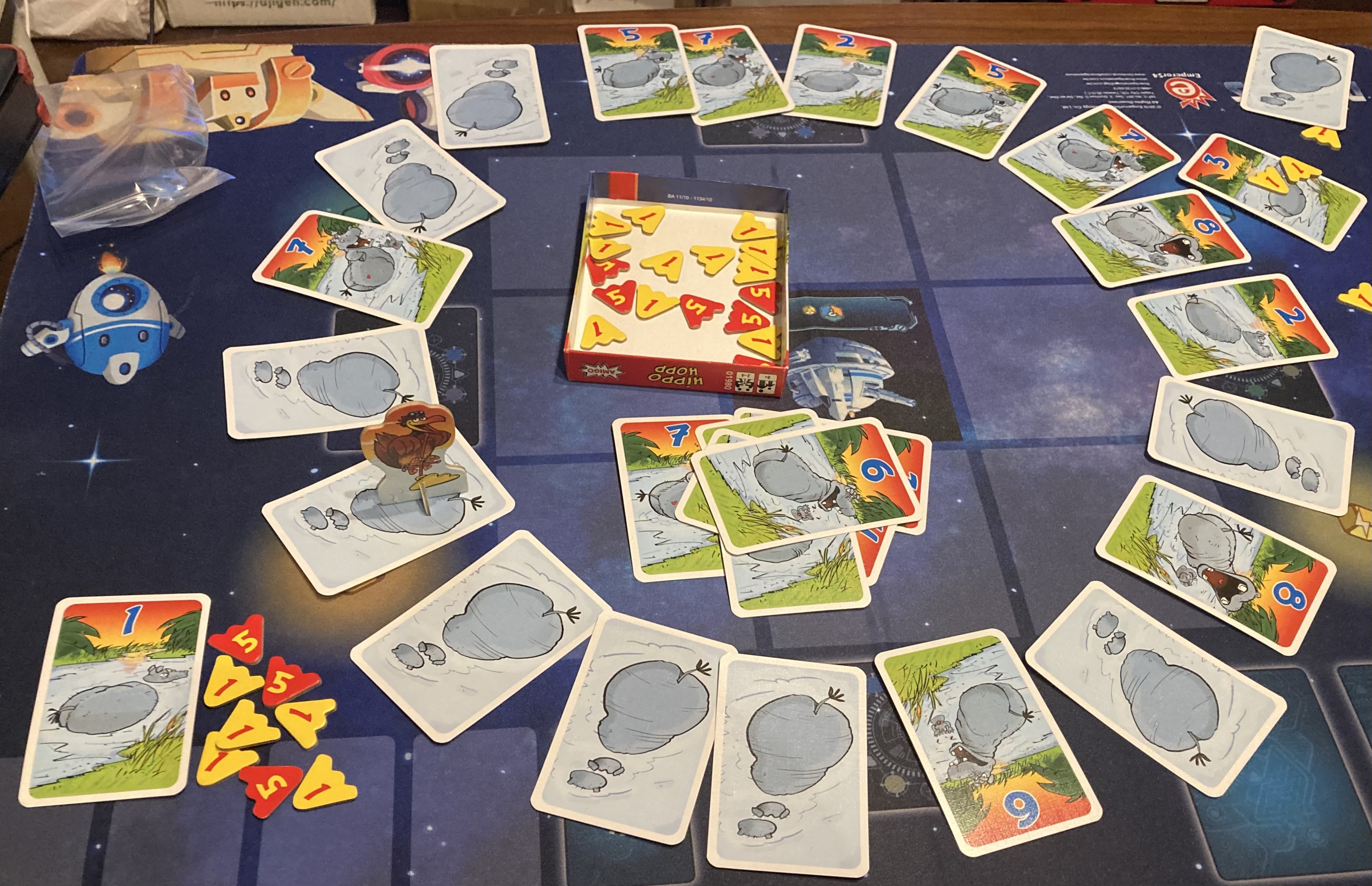 ・ サークルを作った19枚のカードを、いったん表の数字が見える怒ったカバを上にして置く