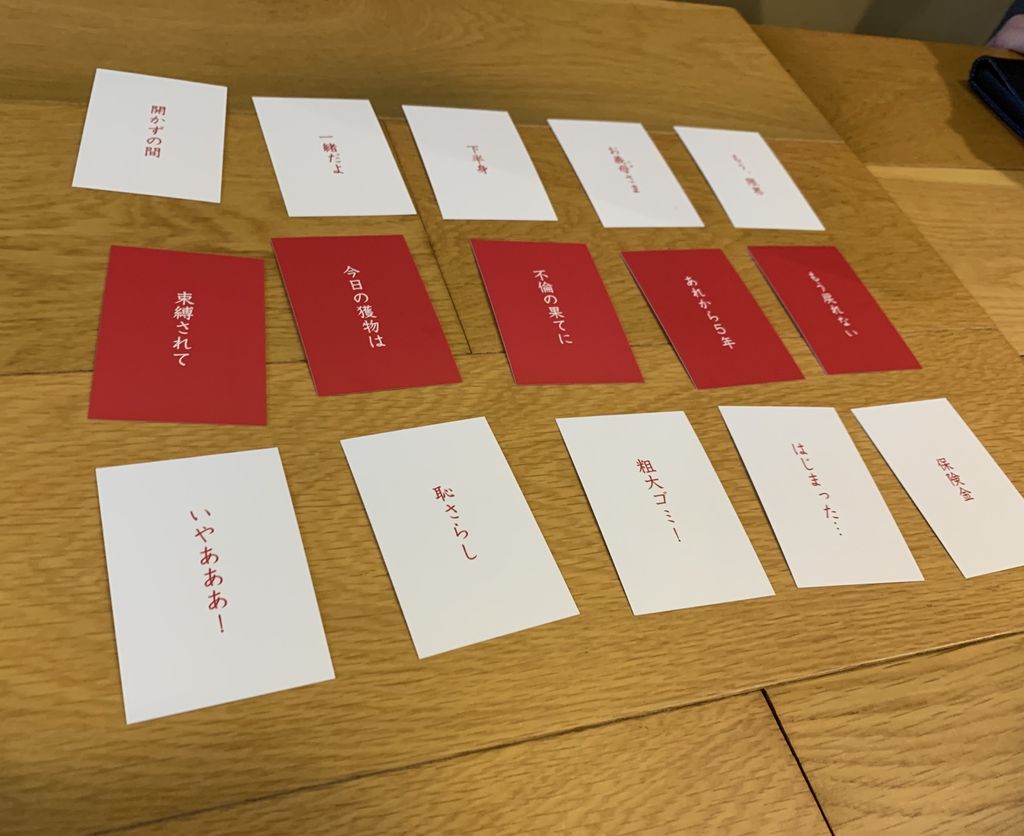 いかにも昼ドラっぽいドロドロ、ネットリした様々言葉が書かれたカードを使って、五七五の川柳を作ります( *¯ ꒳¯*)✨