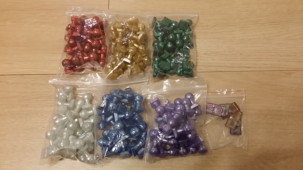 軍隊コマは元からゲームに付属していたチャック袋、得点マーカーは100均で手に入るチャック袋にそれぞれ収納。