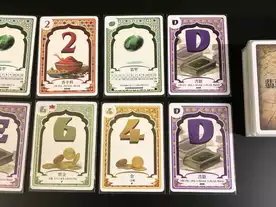 プレイヤーは交易商人となって翡翠や金、香辛料、書物のカードを競り落とします。特徴的なのはカードの獲得方法がプレイヤー間における逆競り(安い方が勝ち)になっている点です。各ラウンドでは山札からカードが8枚めくられ、プレイヤーはその中から何枚欲しいかを宣言します。一番少ない枚数...