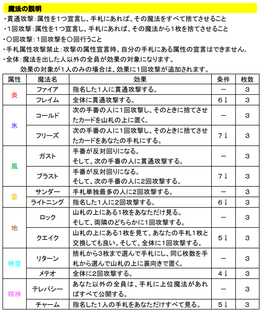 ちなみに説明書に魔法一覧が記載されています。