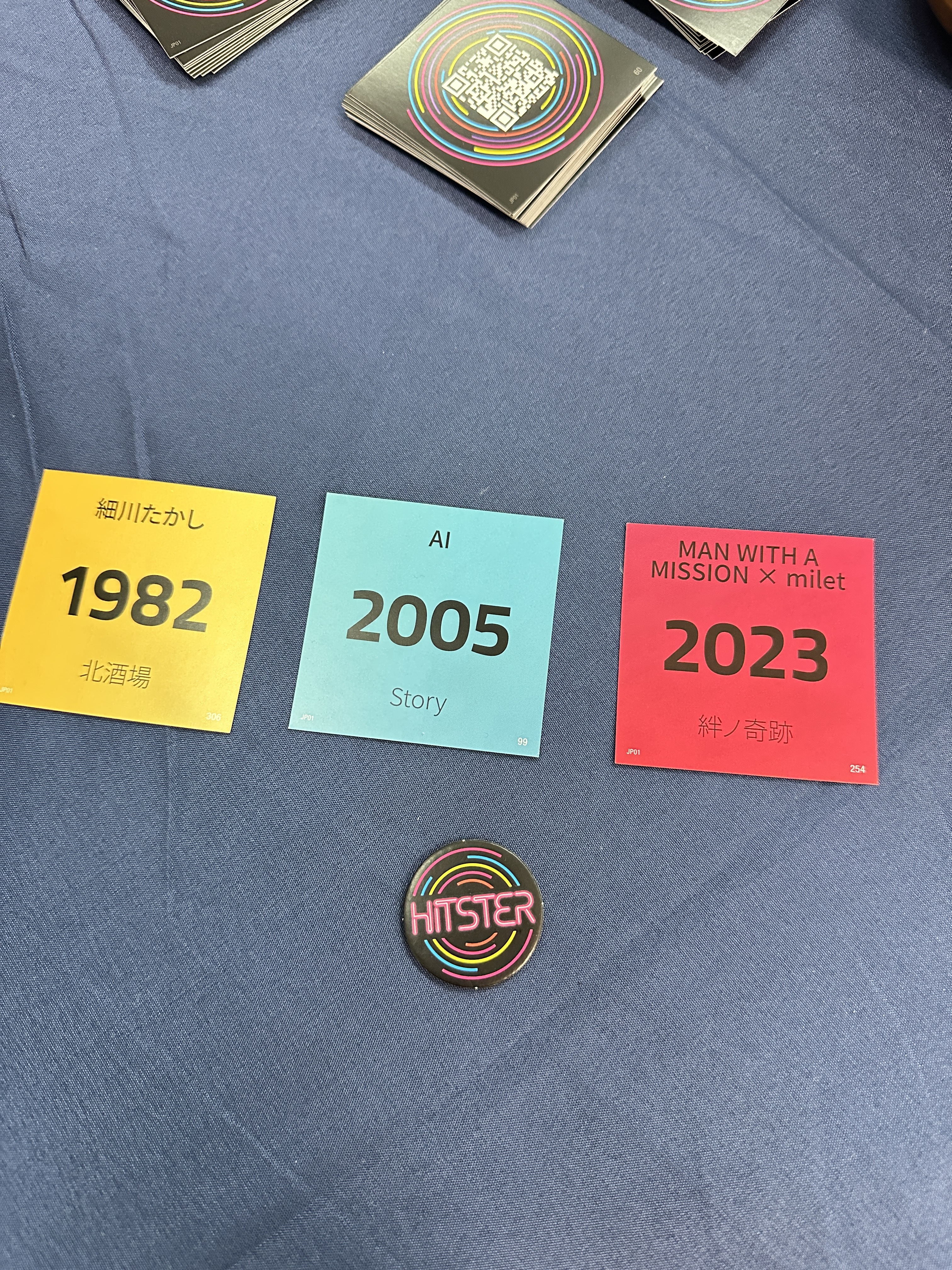 1950年代(?)から2024年までのヒットソングを聴いて、年代の順にそのカードを並べていく推理クイズゲームです。