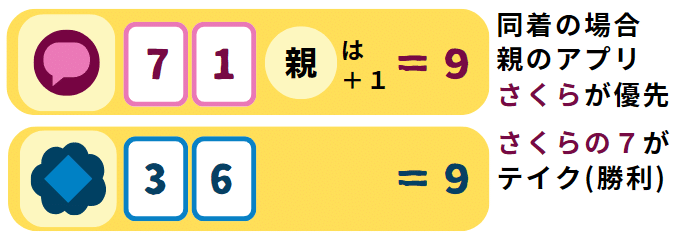 親プレイヤーの出したアプリの合計に、さらに1を足します。