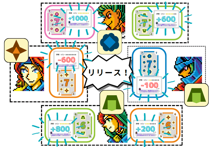 アプデ対象アプリのコミットカードを出した中で、一番大きい数を出したプレイヤーがこのトリックの勝利者となります。
