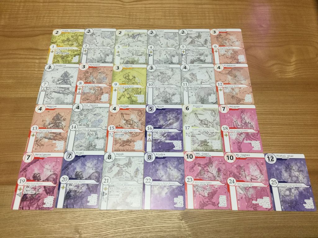 星カードの一覧を見てもらうと分かるのですが、コストと得点はアンバランスです。例えば、「ベガ」はコスト2で12点。「アルドラ」は、コスト8で8点です。
