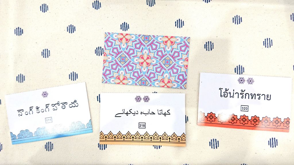 テルグ語・ウルドゥー語・タイ語の3種類で3色。