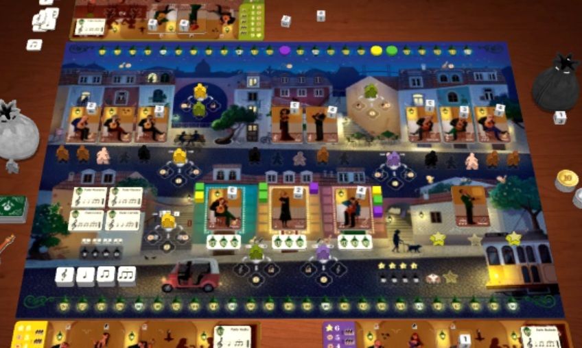 ポルトガルの料理と伝統音楽「Fado」のステージがあるレストランを経営して、誰よりも高い得点を得る中量級のゲームです。