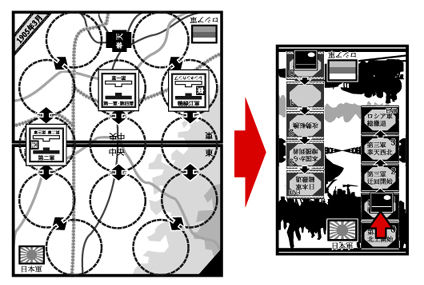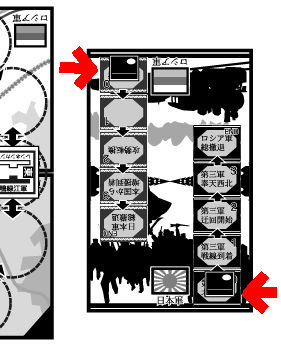 効果によっては、損害チップを取ったり、戦況カード上の軍コマが動いたりします。
