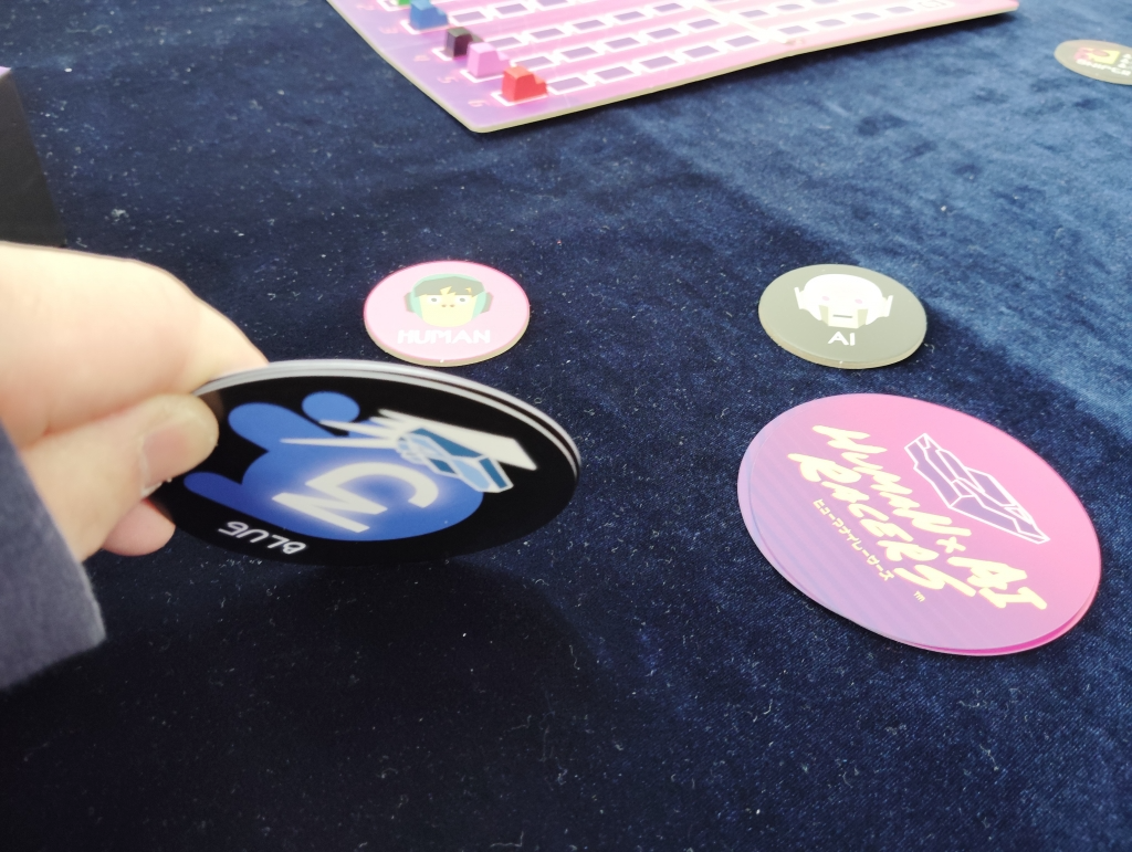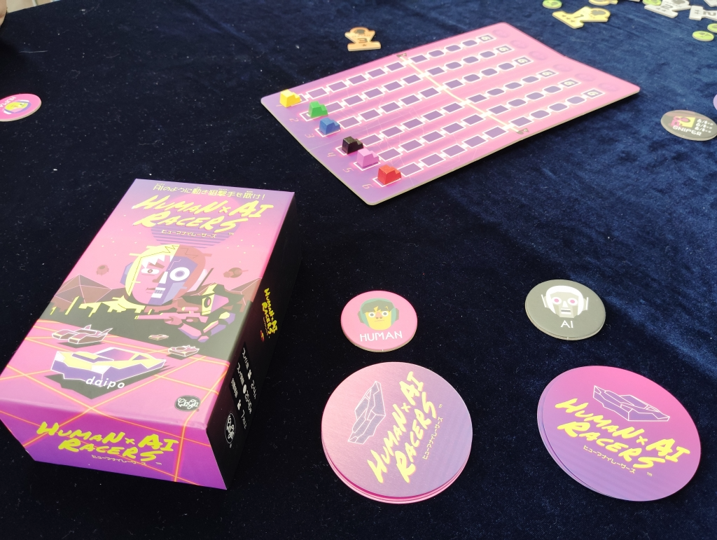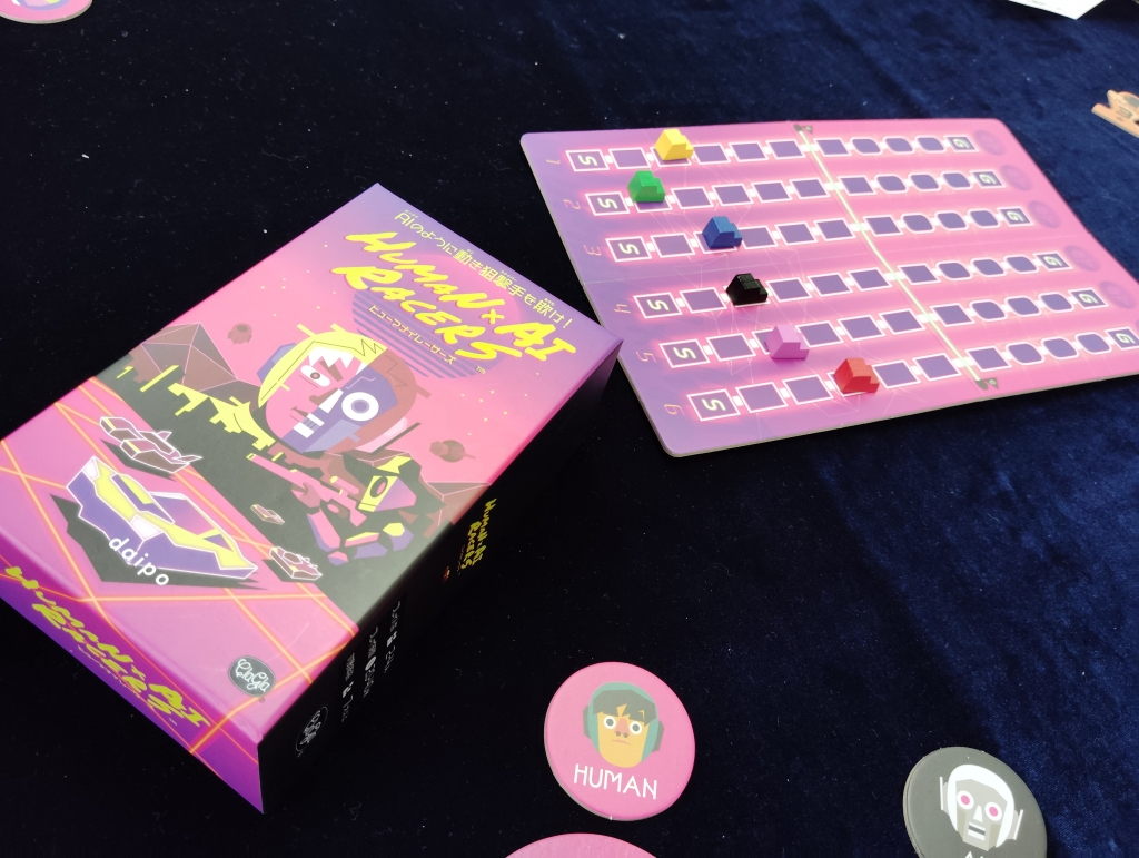 集められたカードをしっかりとシャッフルして、誰がどの色の自分のカードを出したかやAIかを分からないようにしたら1枚ずつ公開してレースカーを進めていきます。