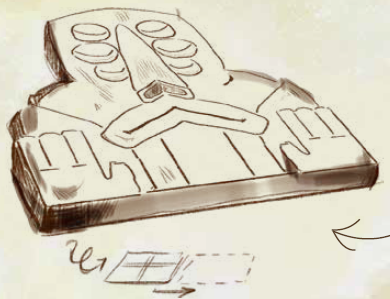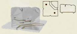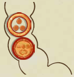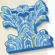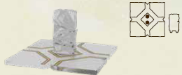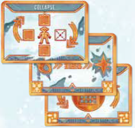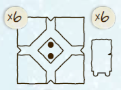 1枚は開始スペース (マップの金色の歯車面を使用している場合は中央、代替セットアップでは左のアイコン)に置き、もう 1枚はプレイエリアの近くに置いておきます。 |