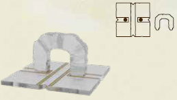 4つのコーナーピン(E)を寺院グリッド(D)の四隅に挿入し、ボーダーの穴に通してボーダーを固定します。