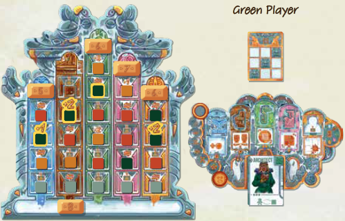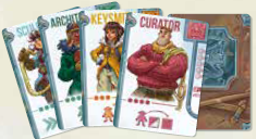各プレイヤーは、ゲームの個人スコア目標として保持するキーカードを1枚選択し、プレイヤーボードの近くに裏向きに置きます。選択されていないすべてのキーカードはボックスに戻されます。 |