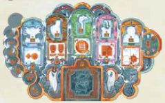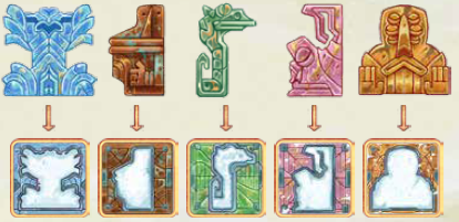 3. 偶像トークン(Q)を見つけて、色で分類します。偶像をすべてのプレイヤーの手の届くところに配置して、サプライを形成します。