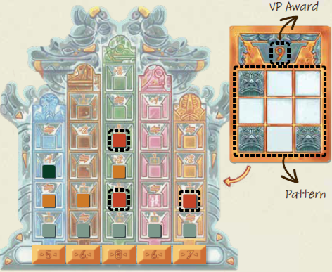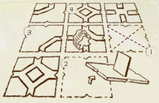 残りの24枚の通路タイルを寺院グリッドにランダムに配置します。
