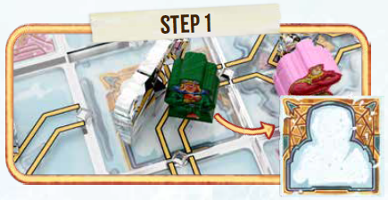 鍵職人のキャラクターを使用するプレイヤー(もしいれば)は、以前に取っておいた「ラウンドアバウト」通路タイル1枚を取り、自分のプレイエリアに配置します。