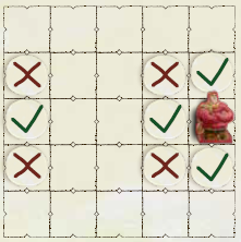 寺院グリッドを寺院マップの上に配置し、グリッドをピボットベースの中央に配置します。グリッドの下側の各コーナーにある「脚」が、マップ上ではなくテーブルの上に置かれていることを確認します。