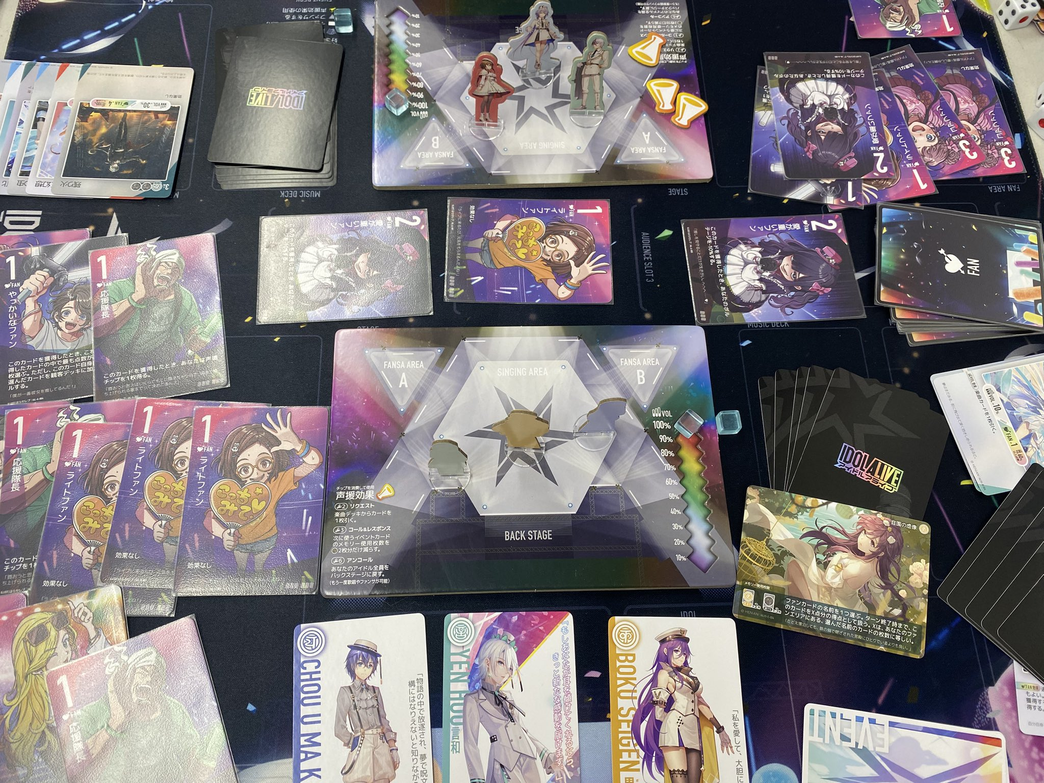 基本セットのカジュアル構築(1つのセットを2人でシェア)で時折見られた、特定の組み合わせによる一方的なゲーム展開が起こりにくく、どのアイドルを選んでも接戦を楽しめるようになっている点も好感が持てます。