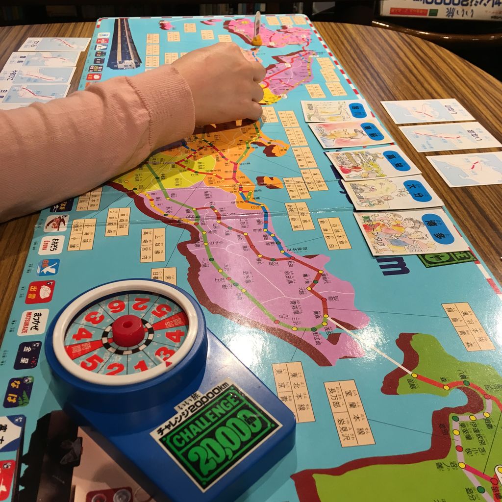 が、プレイを進めていくにつれ、少しずつ把握、後半ではうっかり店主が間違った動きをしてしまった部分にツッコミが入るくらい理解されていました。おもしろかったのは一応ゲームで旅行気分を味わうのも醍醐味のひとつで、女性の参加者さんがしっかり地元の駅に里帰りしていたのは微笑ましかったです。
