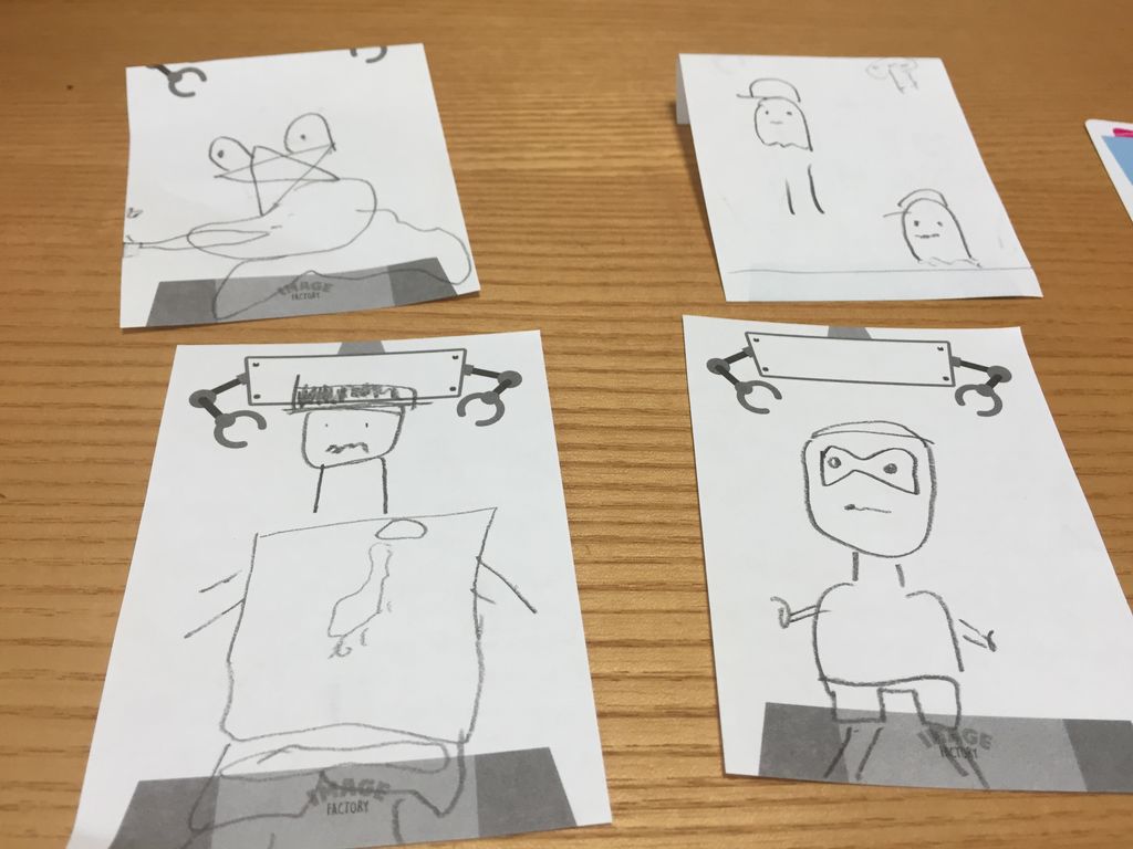 ポイントは二つのお題を別々に描いてしまうとつまらないのでなんとか組み合わせてもらうように働きかけるところでしょうか。