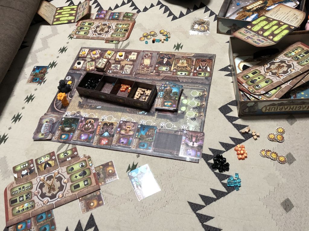 後半戦:妻は雇用をせずに生産機械や防御機械や変換機械を修理、分解、整理を行いながらプロジェクトを進め点数を伸ばしていく。ほっちーはアクションを自由に出来る助手を雇用し、特殊機械(毎ターン+1点)で点数を伸ばす
