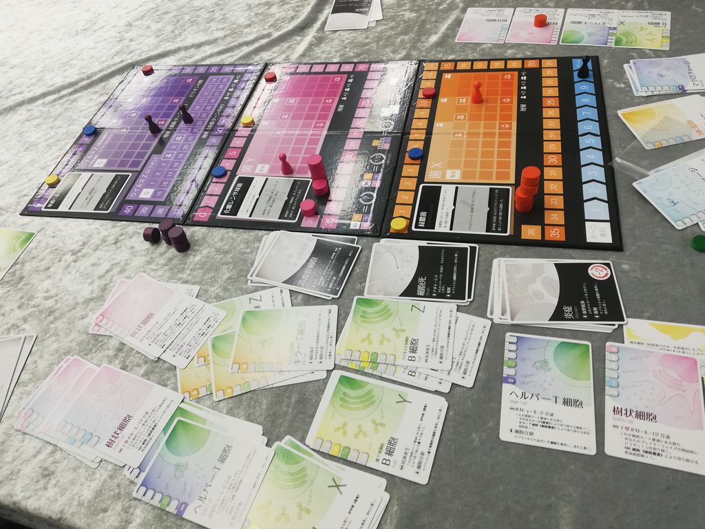 また、効果もプレイした後に場に残り免疫力を高めるB細胞やヘルパーT、ウイルスや菌を排除する好中球やキラーTなど分かりやすく免疫系を再現している(らしい)。
