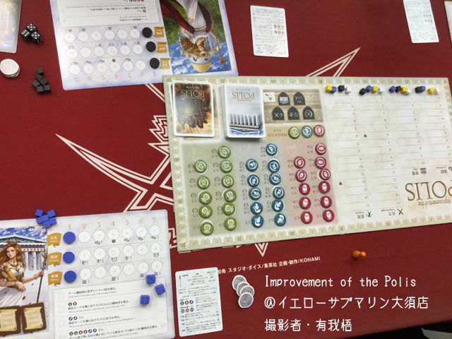 ゲームとしては10回やっても1回もドベ以外の順位にならないタイプのゲームであり完全にNfMなのですが、ゲームとしてのうまみ、面白さは、同サークルの2作目のマルシェ・ド・フランスよりは、ゲームとしてのキモがわかりやすくよく出来ていると思います(あっちもよく出来てるゲームだと思うんだが、ゲームとしてのキモの部分がドコなのか、結局判らず)。アクションを行うダイスの選び方とか、資源たる市民/兵士の使い方とか、やってて練り込まれてるのがわかるシステム自体は好きです。でもこれ絶対私には一生勝ち方わからんゲームだわ。最後まで収入1だったし。