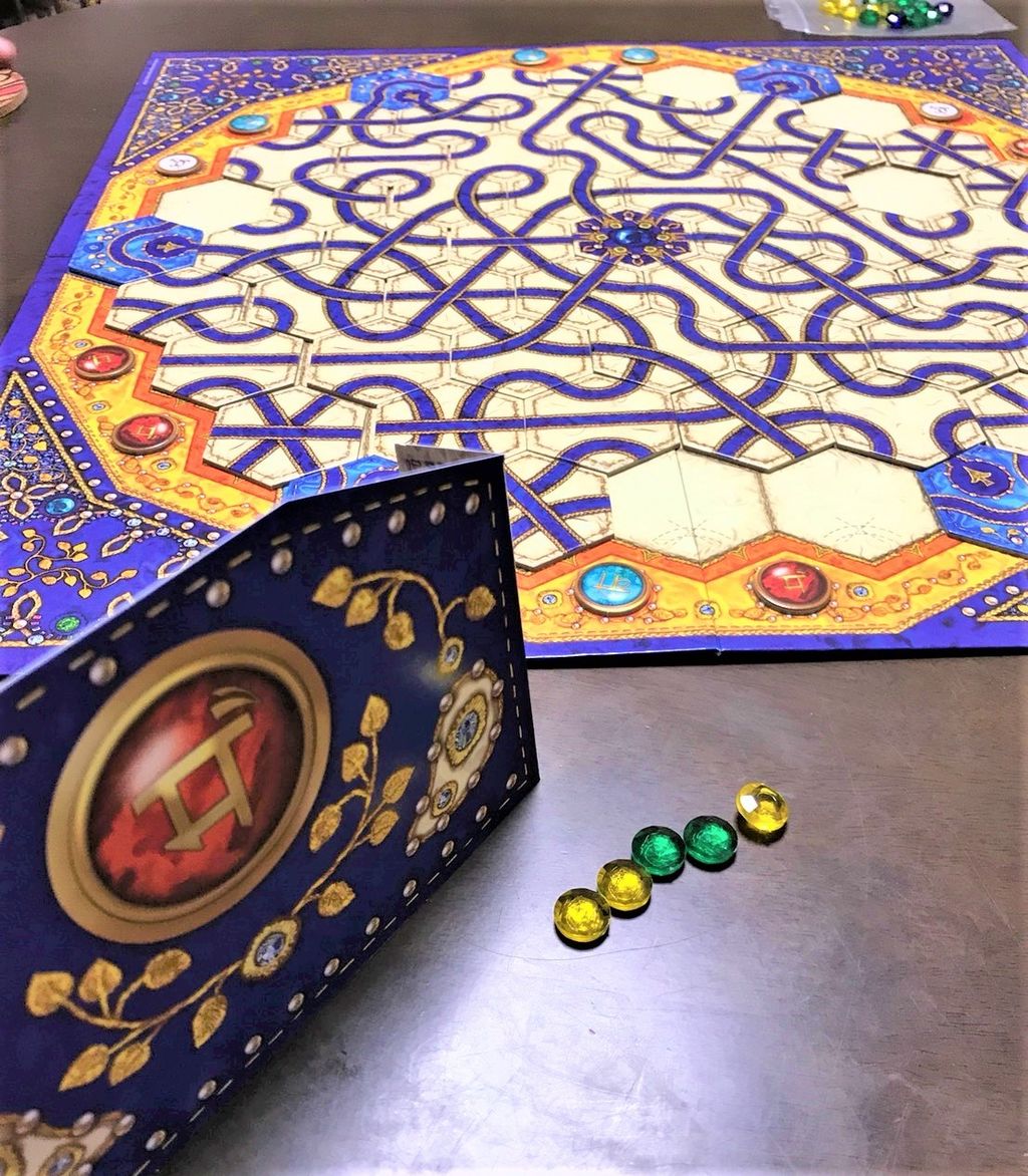 宝石が全てなくなったら、ゲーム終了です。最終的には、こんなふうにインディゴの道がたくさんくねくねしたボードで終わります。