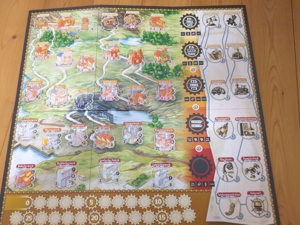 ボードにタイル構成が書かれているので計画は立てやすいがドイツ語表記の為、視認性はすこぶる悪い(Holzって何?)、せめて英語ならばまだしも…
