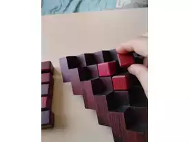 二人のプレイヤーが交互にブロックを置いてピラミッドを作っていく。完成したピラミッドの各面は15のブロックで構成されている。2面以上で多い色の方が勝ち。