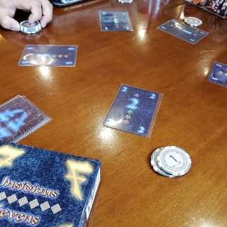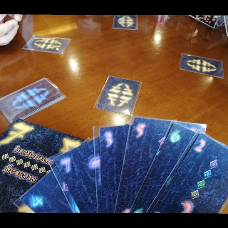 5色0~7の数字カードを使用。最初と最後のラウンドは行わないが、他のラウンドでは、カードを配られてから手札から1~2枚を選び左隣、右隣に渡します(ラウンドにより違います)。