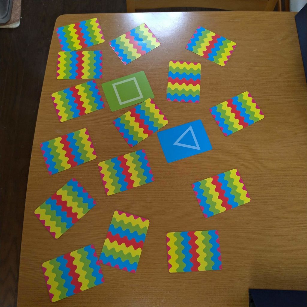 このように、トランプの神経衰弱ゲームをプレイしたことがあれば、前述した3つの追加ルールだけを理解できれば、このゲームはプレイできます。また、記号の絵合わせをするゲームなので、数字が読めなくてもプレイできます。小さい子供とプレイすることも可能だと思います(ゲームの箱には4歳からとなっています)。ただ、小学生の高学年より上だと、簡単すぎてちょっと物足らないかもしれません。
