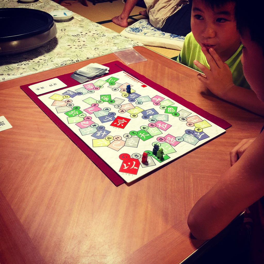 ルールは簡単、お題に合ったもので、止まっているマスの文字で始まる言葉を早い者勝ちで言うだけ!詰まった時の救済ルールもあるし、小さい子にはハンデも付けられるしで、なかなか考えられている良いゲームだと思いました。また遊びたい。
