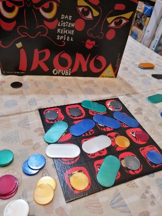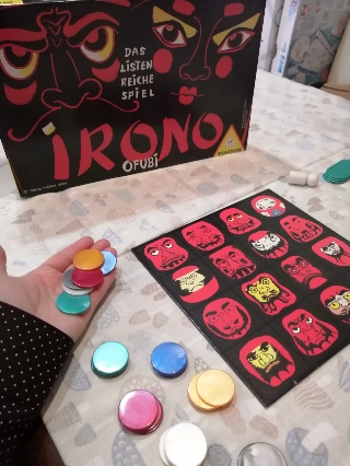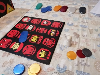 当てられてしまったら、当てたプレイヤーが自分のチップを配置します。交互に1色のチップを握る手番を8回ずつしたら16マス全てにチップが配置されてゲーム終了。