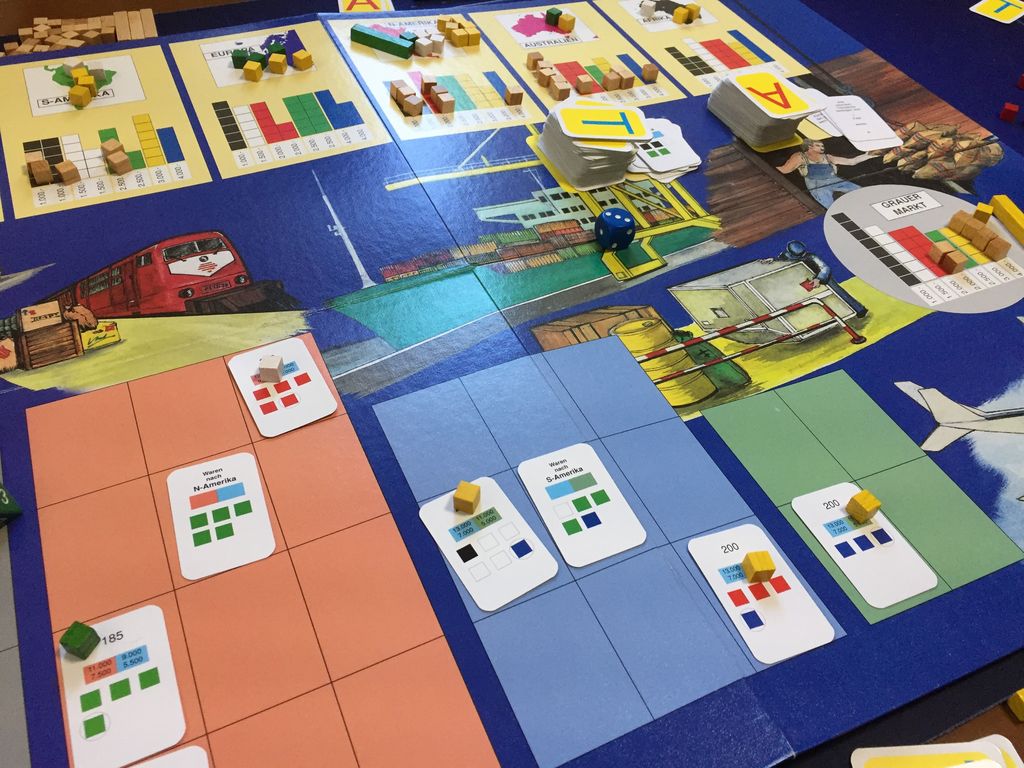 世界の大陸を表すスペースがあり、ここに商品を置いて売買を行います。