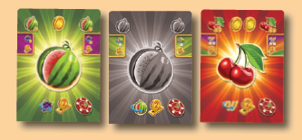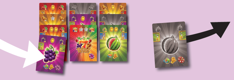 すべてのカードが表向き(右下には果物の入ったポーカーチップが描かれています)であることを確認してください。 |