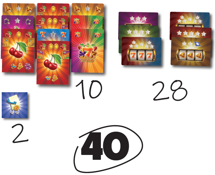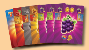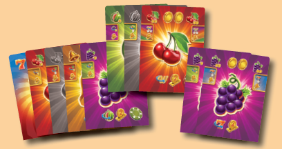 35枚の目標カードをベル、チェリー、メロン、ブドウ、セブンの5つの異なるデッキに分けます。プレイヤー数に対応していないカードはすべて取り除きます。各デッキを並べ替えて、星が最も少ない目標が一番下に、星が最も多い目標が一番上になるようにします。