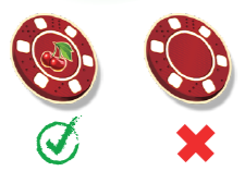 2シンボル 出目が2シンボル(左端と中央のシンボルが同じで、右端だけ異なる)の場合、ボーナストークン1つが報酬として与えられます。 |