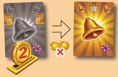 例: このカードのアップグレードには2コインがかかります。 カードを反対の面に裏返します。 カードがアクティブになり、ゲーム終了時に1VPの価値があります。 |