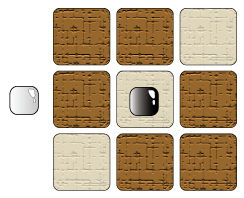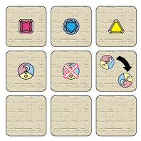 (2)何も書かれていない石板タイル(ブランクタイル)以外の6枚の石板タイルを裏向きにし、以下のように3行×3列の形に並べます。