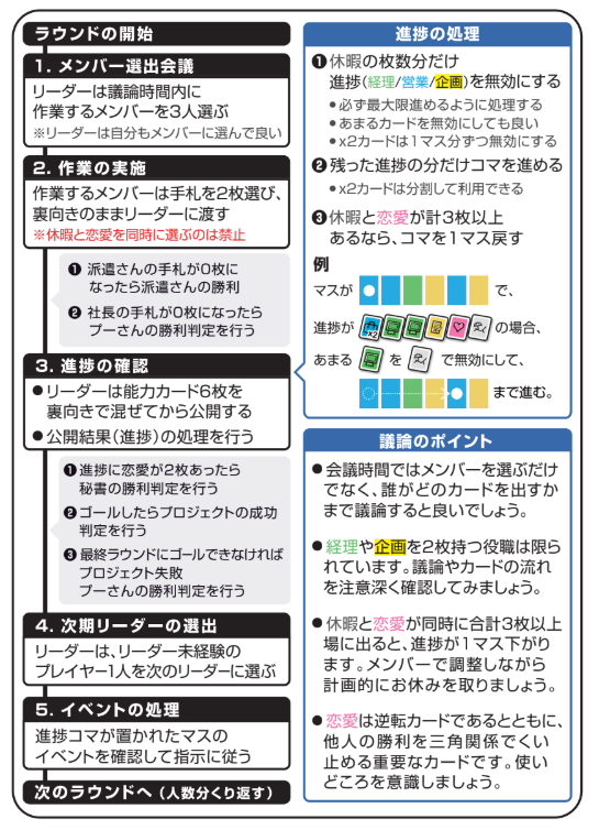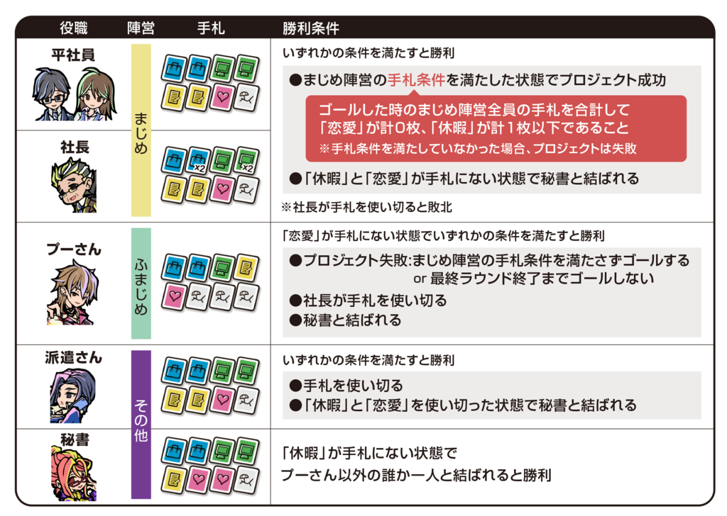 | プレイ人数 | 社長 | 平社員 | プーさん | 秘書 | 派遣さん |