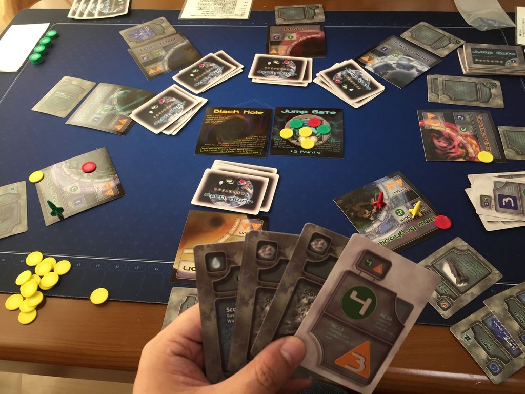 プレイの時、ブラックホールのルールをやや勘違いしていて、実際のスペックを出せていたか怪しいですが、やや淡々と進む印象がありました。これのリメイクで、Schmidtからスペースなんちゃら(スペースミッション?)ってタイトルで出ているみたいなので、その辺で大分改良されている気がします。