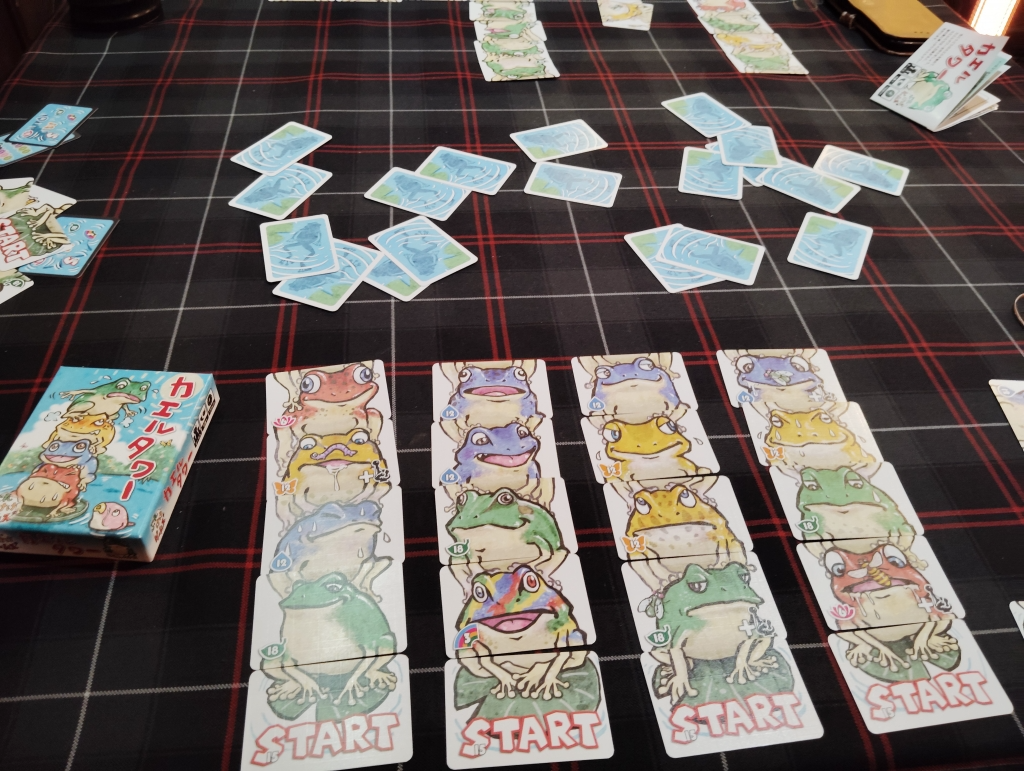 色ごとにカエルの数が違い同じ色を4匹揃えてカエルタワーにできれば即勝ちなので、1番数が多い緑のカエルは人気です。