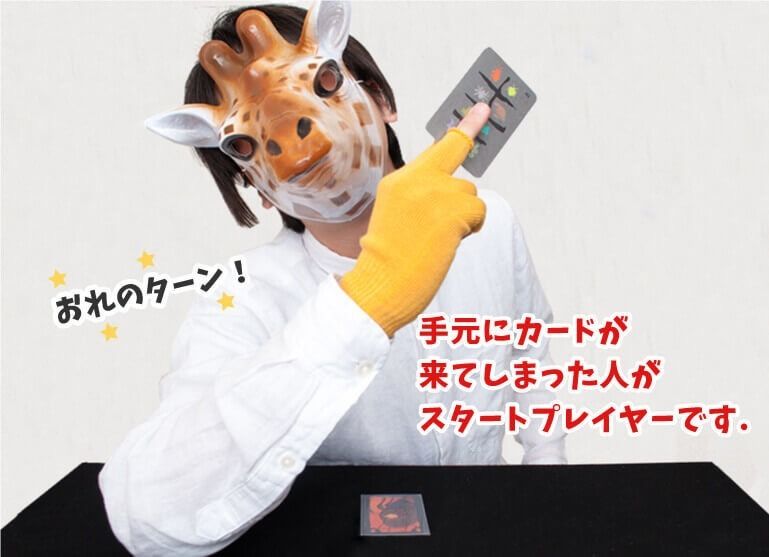 - 先行から相手にカードを裏向きで差し出し、カードの絵柄を宣言する。