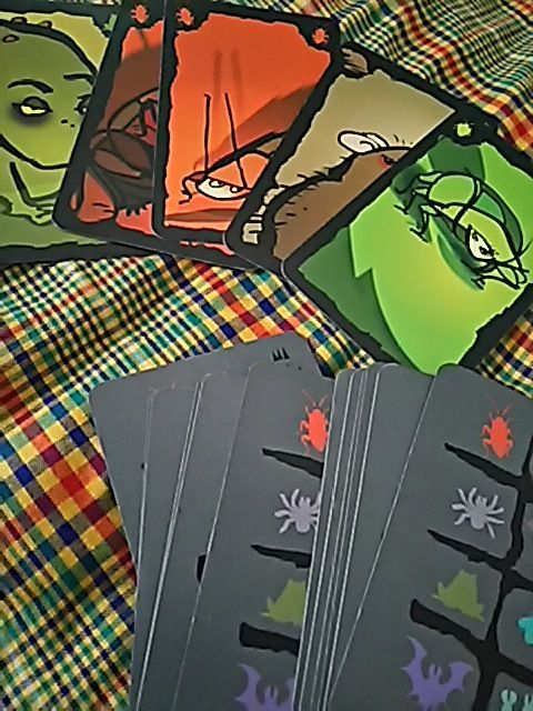 カードが痛むほど遊んでいるゲーム。スタートプレイヤーは、私は最近タイトルになっている昆虫を見た人からを提案してます。ゲーム会だと大抵経験者がいるので、インストも楽です。2R以降はトリックをとらされた人からスタート、手順で出来ることは二択。暴くかそのカードを見てない人に委ねるか。勝利条件と敗北条件は事前擦り合わせが必要かも。人数は規定より多くても遊べますが、バランスはさすがに崩れるので、同種3種集めで敗北とするか4か、何種類集めで終わりとするかとか。