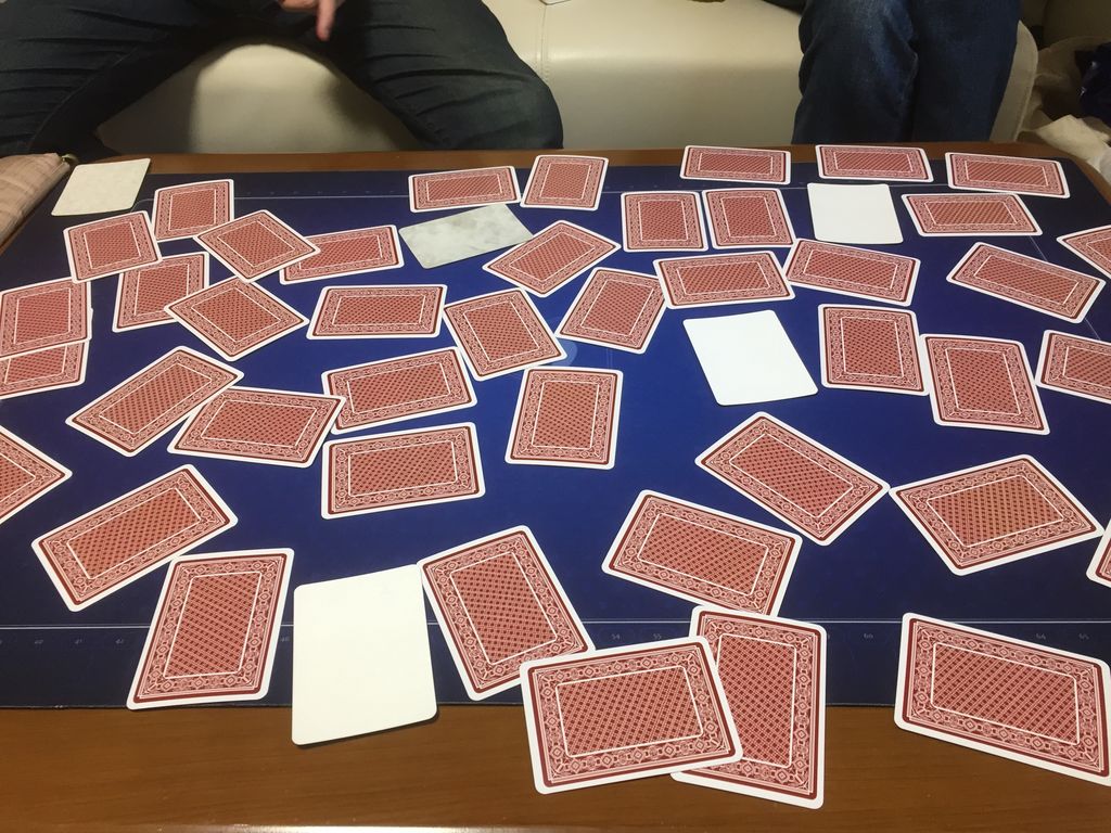 白いカードだけを使った神経衰弱です。ただ、紙質が違うだけです。レザック66とかケント紙とか、フェザーとか。そこでうなづいてる人は印刷所の人か、印刷所のハードユーザーです。