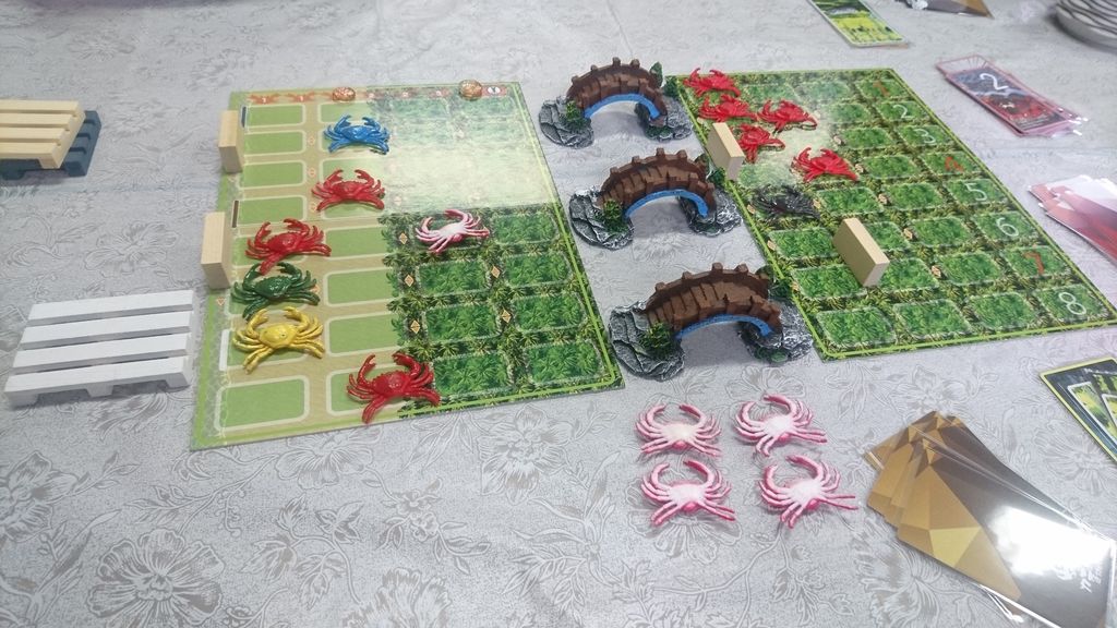 1手番終えるごとにカニが海側に動くので、4人プレイで1周するとカニは 4マス動く上に4匹のカニが増えるため、次手番の開始時には様相が激変する。下手すると行動が出来なくなったり、場当たり的なカニの延命処置しか出来ない状態に頻繁に陥る。クリアに必要な産卵場の建設は最低4枚の同色の木材カードを手札に抱えて特定のポイントでアクションをする必要があるが、そんなヒマはない。移動するにしろ、手札のやりとりをするにしろ手数が足りないのだ。