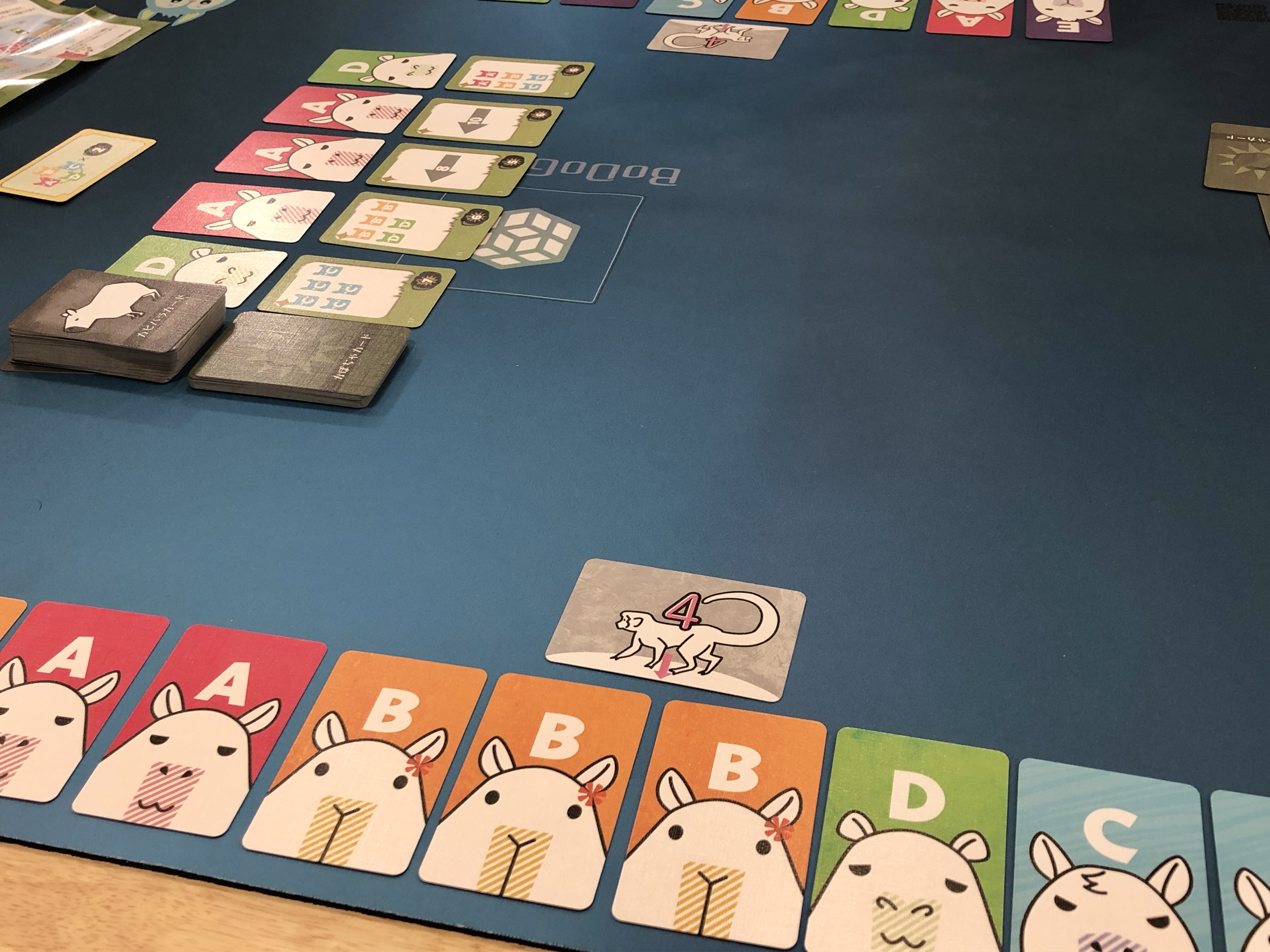 このゲームの面白い所は、同作家の「やぎ山」「ひつ陣」と同じく、スピード感のあるカードドラフトとハンドマネジメント(手札管理)の悩ましさにあると思います。
