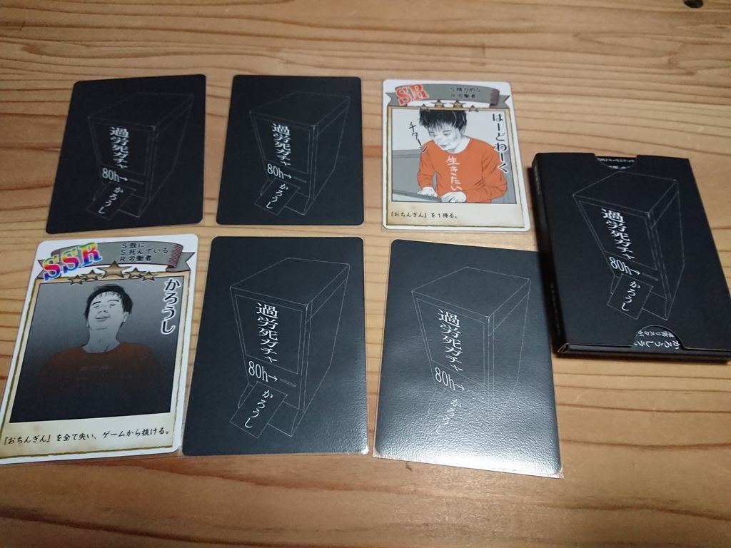 というわけでプレイ感ですが、初手がセーフ(SR)が4に対してアウト(SSR)が2なので、3〜4人でやってもまぁ1人はだいたい過労死します。これはひどい。