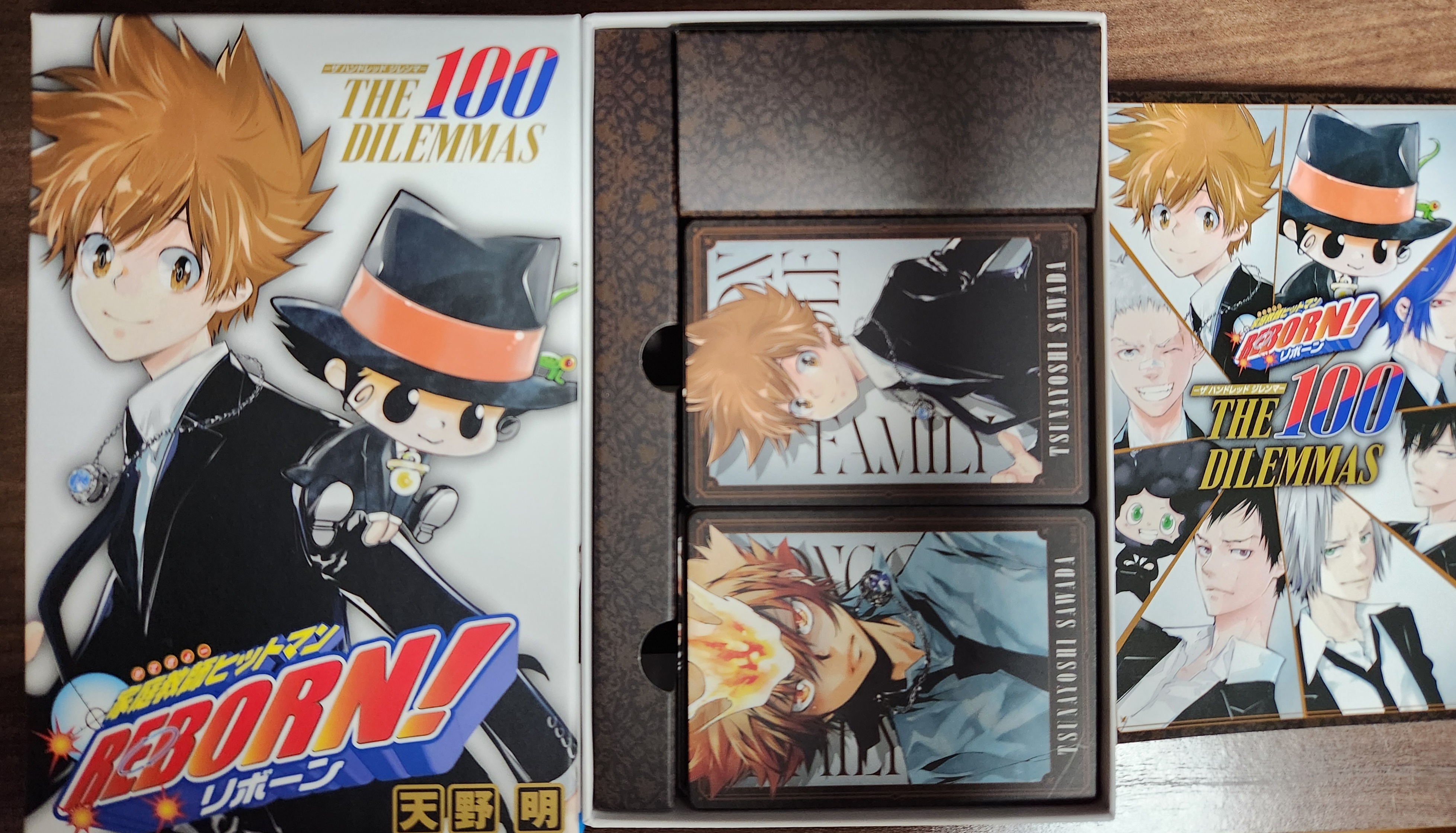 100枚あるお題カードには全部に違うイラストが使われており、カードと印刷の質がやたらと良いのもあってカードのみのボードゲームにしては結構お高めですが、家庭教師ヒットマンREBORN!が好きな人達でやったら楽しめそうです。