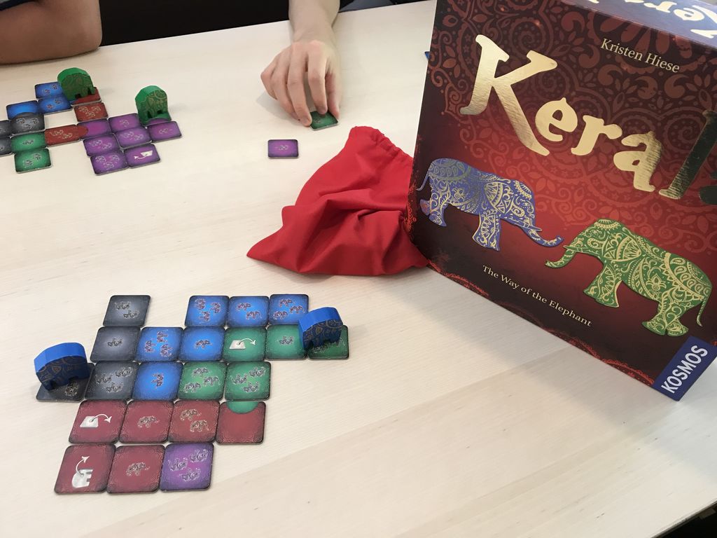 色はバラバラになってはだめで、5色あって沢山の象のシンボルや2色のタイルをより多く配置すること。それによって高得点を得ることができます。